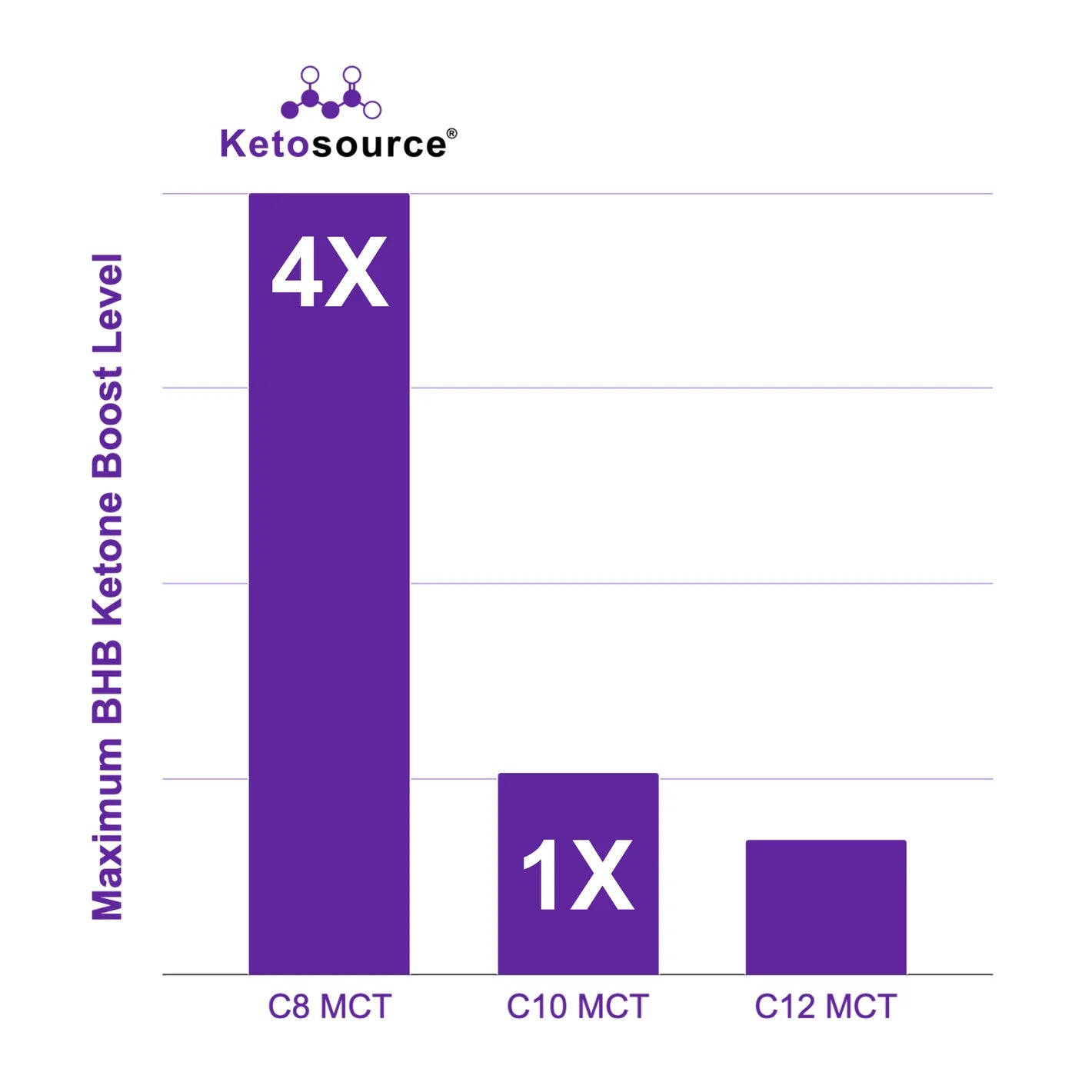 ◉ C8 MCT creates 4 X ketones versus other MCTs like C10 and C12.