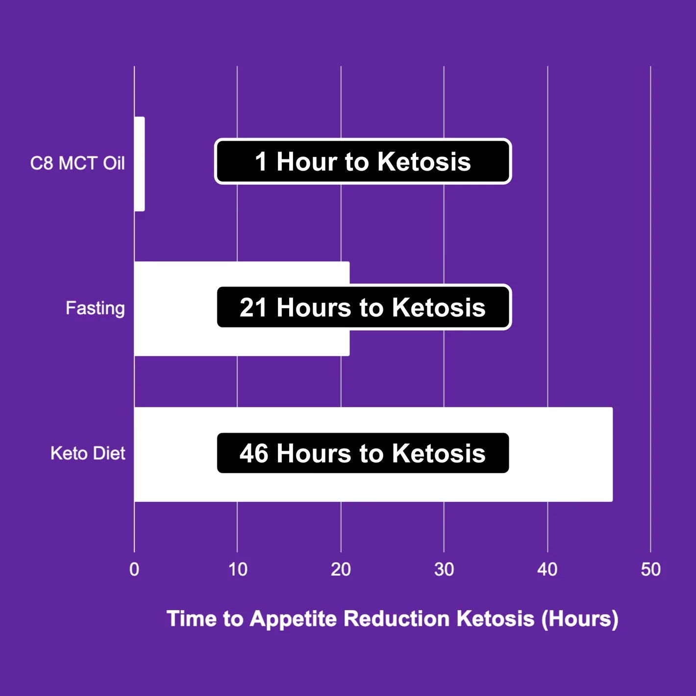 ◉ Once in ketosis, Pure C8 MCT will keep you there for ~2 hours.